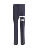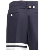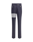 Thom Browne’s wool Pants combine sartorial elegance with the brand’s iconic details. Featuring a front button-and-hook closure, they feature two side slash pockets and two welt pockets at the back. Contrasting embossed buttons and the brand’s iconic bands on the left leg add a distinctive touch to the monochrome design. The regular fit completes a refined garment perfect for a formal look with unmistakable style.