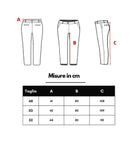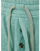 Elastic waist with adjustable drawstring, covered button placket, two side pockets, two back patch pockets. Relaxed fit with cuffs on the bottom.