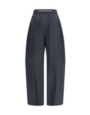 The Alexander Wang Cotton Trousers feature knee pleats and a contrasting jacquard logo elastic waistband. Designed with pockets, trompe-l’œil detailing, and a wide leg, they combine comfort and contemporary style with a distinctive touch