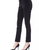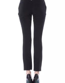 Embrace the allure of Italian sophistication with these stunning BYBLOS skinny pants. Meticulously crafted from a luxurious blend of polyester, viscose, and elastane, these pants epitomize both comfort and elegance. The sleek black hue is versatile and chic, complemented by an edgy lateral zip closure that adds a modern twist. Finished with a delicate frontal application, they’re a statement piece for the fashion-forward individual. Elevate your wardrobe with this sartorial masterpiece.