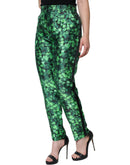 Dolce & Gabbana Green Clover Silk Satin High Waist Tapered Pants