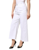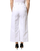 Dolce & Gabbana White Cotton High Waist WideLeg Cropped Pants