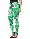 Dolce & Gabbana White Green Leaf High Waist Pants
