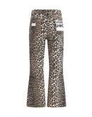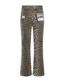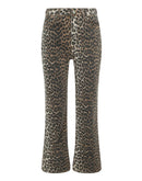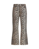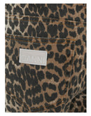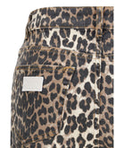 Cotton Pants by Ganni featuring five-pocket flare style, all-over animal print design, contrasting zipper and logo button closure, belt loops, tone-on-tone embossed monogram patch applied to back pocket.