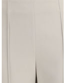 Giorgio Armani viscose cady Trousers, a fabric with ancient origins that maintains its compactness, ensuring clean cuts when lasered. Having become one of the house’s iconic fabrics over time, it’s perfect for adding a modern yet sporty twist to garments. The straight silhouette and high waist define the style, featuring vertical seams, side pockets, and a side zip.