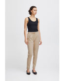 The ICHI IHKATE PA2 Long women’s cigarette trousers, model 20105036, combine modern style with everyday comfort. Crafted from a technical blend fabric (74% polyester, 22% viscose, 4% elastane), they offer a slim fit that enhances the silhouette while ensuring freedom of movement. The design features a clean line, mid-rise elastic waistband with adjustable drawstring, front pleats, and functional side pockets. Perfect for both office and leisure, these trousers are a versatile wardrobe essential that pairs easily with shirts, sweaters, or blazers for an elegant or casual look.