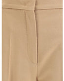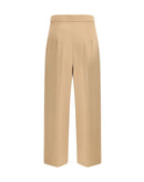 The Marengo Trousers by Max Mara Studio express contemporary elegance through clean lines and a fluid silhouette. Crafted from lightweight pure wool drap, they feature a wide leg and a relaxed fit that moves gracefully with the body. The high waistband with concealed zip and hook closure highlights the refined tailoring, while the slanted side pockets add a touch of understated practicality. A pressed crease and stitched back pleats define the shape, enhancing the trousers’ balance and structure. Versatile and polished, they are ideal for creating modern, sophisticated looks that transition effortlessly from day to evening.