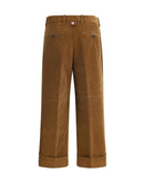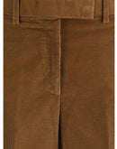 Thom Browne’s corduroy Pants combine refined texture and distinctive details. Featuring a front zipper and hook-and-eye closure, they feature two side and back welt pockets. The iconic tricolor applique band on the back signs the garment with an unmistakable touch, while turned-up hems and a straight leg complete a refined, contemporary look.