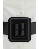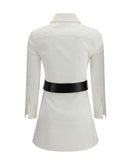The poplin shirt mini Dress by Balenciaga reimagines the classic men’s shirt with a modern, feminine twist. Crafted from cotton poplin, it features a classic collar, front button closure, and long sleeves with adjustable cuffs. Darted sides enhance the silhouette, while the contrasting, adjustable, and removable belt accentuates the waist with a bold touch. A sleek, contemporary piece that combines tailored precision with urban sophistication.