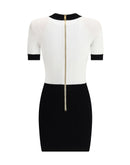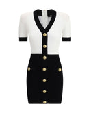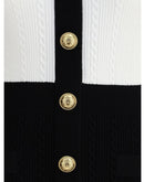 Balmain’s Braided Pattern midi Dress is an elegant and refined piece featuring a V-neckline and short sleeves. It features a front closure with embossed buttons, the Maison’s signature detail, and a back zipper for a perfect fit.
