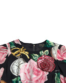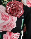 Gorgeous brand new with tags, 100% Authentic Dolce & Gabbana A-line dress. Fastened at the back with a zip and a hook. Decorated with a colorful rose print and floral embellishments.