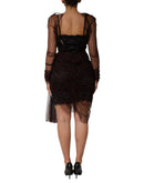 Dolce & Gabbana Black Lace Trim Long Sleeve Sheath Mini Dress