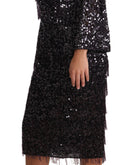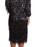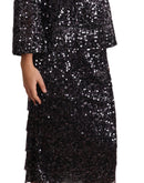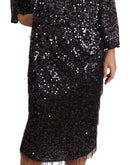 Dolce & Gabbana Black Sequined Long Sleeve Shift Midi Dress