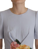 Dolce & Gabbana Blue Floral Applique Midi Viscose Dress