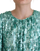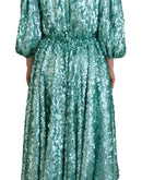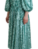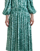 Dolce & Gabbana Blue Sequined Pleated Aline Midi Nylon Dress