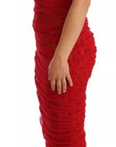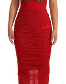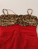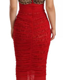 Dolce & Gabbana Brown Leopard Red Tulle Sheath Midi Dress