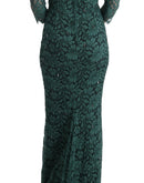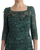 Dolce & Gabbana Green Floral Crystal Ricamo Sheath Dress