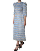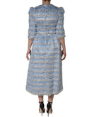Dolce & Gabbana Light Blue Silver Jacquard A-line Midi Dress