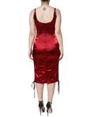 Dolce & Gabbana Red Bustier Corset Lace Bodycon Midi Dress