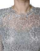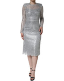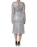 Dolce & Gabbana Silver Floral Lace Bodycon Sheath Midi Dress