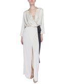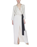 Experience timeless elegance with the Sandro Ferrone women’s long dress, model S23XBDBELAMY. Crafted from 100% polyester, this dress features a fluid and sophisticated silhouette designed to flatter every figure. The refined wrap neckline and long sleeves offer a touch of class, while the contrasting side belt adds a modern and feminine accent. A front slit provides movement and allure, making this dress perfect for special occasions, ceremonies, or evening events. The high-quality material ensures comfort and a flawless fit, for a look that stands out in every detail.