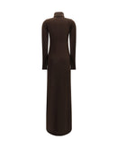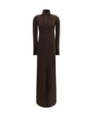 Tom Ford’s long knit Dress is a sophisticated, wrap-around garment perfect for understated yet assertive elegance. Crafted from soft knit, it features a high collar and a half-bust front button closure that adds a touch of structured style. Ribbed cuffs define the sleeves with understated style, completing an essential yet character-filled look.