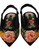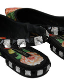 Dolce & Gabbana Black Floral Crystal Slingbacks Flats Shoes