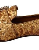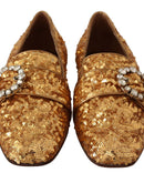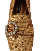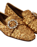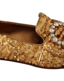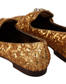 Dolce & Gabbana Gold Sequin Crystal Flat Women Loafers Shoes