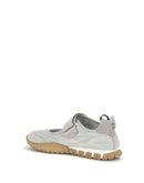 The Tyre Ballerinas by Miu Miu reinterpret the classic women’s model with a contemporary, sporty attitude. This innovative design blends elegance and functionality, inspired by the dynamism of street tires, from which it draws its characteristic flexible and abrasion-resistant sole. Made of technical fabric and suede leather, the Tyres express the bold and experimental soul of the maison, playing with contrasts of materials and volumes. The pull-on closure, embellished with logo embossing and screen printing, adds a modern and practical touch.