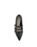 Pinko’s studded Ballerinas feature an almond toe and a punchy design. The three-buckle closure is embellished with flat studs applied on the upper and on an ankle strap for a bold and feminine look.