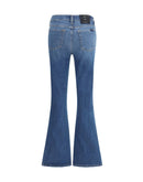 Ali flare Jeans by 7For are made of stretch fabric designed to shape and flatter the figure. Featuring a high waist and flared but slim leg, they offer a timeless style perfect for both dressy and casual looks. They feature front zipper and button closure, five classic pockets and belt loops at the waist.