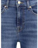 The Relaxed Skinny Jeans by 7 For All Mankind blend comfort and sophistication in a mid-rise, slim yet relaxed silhouette. Crafted from blue Slim Illusion denim, they embrace the figure with lightness and ease, making them perfect for everyday wear. The cuffed hem adds a contemporary, versatile touch, while premium fabrics highlight the brand’s refined identity. Pair with a matching denim jacket for a bold total look or elevate the style with heels for a feminine twist.