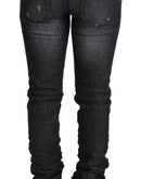 Acht Black Washed Cotton Low Waist Skinny Denim Trouser Jeans