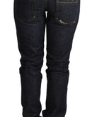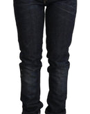 Acht Dark Blue Cotton Slim Fit Folded Hem Women Denim Trouser Jeans