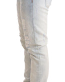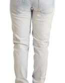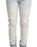 Acht Light Blue Distressed Cotton Folded Hem Denim Trouser Jeans