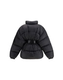 The hourglass belted short Down Jacket by Balenciaga interprets the brand’s sculptural and contemporary aesthetic. Made of lightweight technical fabric, the garment features a silhouette defined by its hourglass construction and high collar that elegantly frames the profile. The front zipper closure and side zipper pockets integrate functionality and essential design, while the wide belt with square buckle emphasizes the waist, enhancing the balance between shape and structure. A garment that combines lightness, volume and architectural identity in a bold and refined expression of style.
