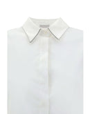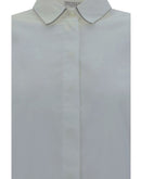 Brunello Cucinelli’s cotton shirt is an elegant and refined garment made from high-quality poplin. The classic collar, embellished with the brand’s iconic jewels, adds a touch of understated luxury. The front button closure keeps the design simple and sophisticated, while the adjustable button cuffs allow for a customized fit. The monochrome pattern gives a clean, versatile look, while the regular fit ensures comfort and a classic silhouette.