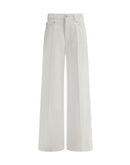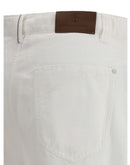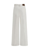 Brunello Cucinelli’s cotton linen Jeans feature a mid-rise, five-pocket style perfect for a stylish and versatile look. The front zipper closure adds practicality, while the wide-leg design offers a comfortable, modern fit. Belt loops at the waistband are embellished with iconic appliquéd shiny jewels, adding a touch of sophistication. Applied logo leather patch on the back adds a distinctive and classy detail.