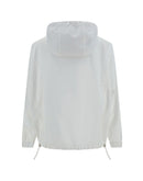 The Brunello Cucinelli Rain Jacket is a sophisticated and functional piece, ideal for facing bad weather in style. The model features a drawstring-adjustable hood, perfect for adapting to your needs. The front closure with a double-slider zip is enriched by shiny jewels applied on the perimeter, adding a touch of luxury and originality to the design. The two side zipped welt pockets offer practicality, while the elasticated cuffs and adjustable drawstring hem ensure a comfortable and customizable fit. The patch with the iconic brand logo applied on the front gives a distinctive touch to the piece, which comes with an elegant and versatile monochrome pattern.