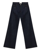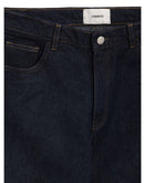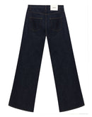 High Waist Jeans with Wide Leg Coperni. Cotton, dark blue, button and covered zipper fastening, five pockets and white leather tag with contrasting logo applique on back.