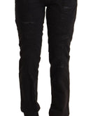 CYCLE Black Cotton Distressed Low Waist Slim Fit Denim Jeans