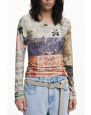 Unleash your daring style with Desigual’s Limbani t-shirt, where fashion meets flair in an eye-catching pattern. This long-sleeved beige top exemplifies boldness with its wide neck cut and the signature Desigual logo, making it a standout addition to your wardrobe. Crafted for both comfort and statement, the blend of elastane and viscose ensures a flattering, flexible fit that moves with you. Embrace the trendy vibes with Desigual!