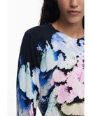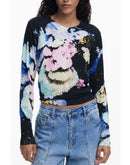 Immerse yourself in the unique charm of Desigual with this statement piece that transcends the ordinary. The long-sleeved, crew neck sweater boasts an eye-catching pattern that embodies the eclectic spirit of the label. Crafted with a rich blend of linen, viscose, and polyamide, it ensures both comfort and durability. Adorned with the iconic Desigual logo, this sweater is a black canvas for self-expression, perfectly aligning with your bold and trendy fashion sense.
