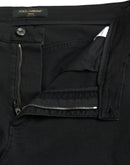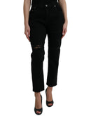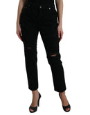Dolce & Gabbana Black Cotton High Waist Tattered Denim Jeans