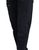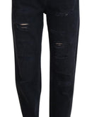 Dolce & Gabbana Black Cotton Tattered High Waist Denim Jeans