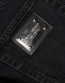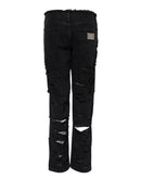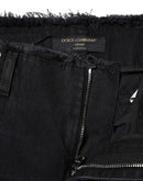Dolce & Gabbana Black Cotton Tattered Mid Waist Denim Jeans