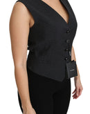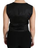 Dolce & Gabbana Black Dotted Waistcoat Vest Blouse Top