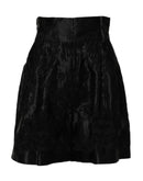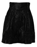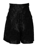 Dolce & Gabbana Black Floral Embroidery Silk High Waist Shorts