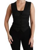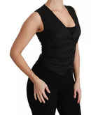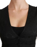 Dolce & Gabbana Black Lace Waistcoat Slim Vest Silk Top