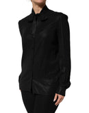 Dolce & Gabbana Black Viscose Long Sleeve Tie Neck Blouse Top